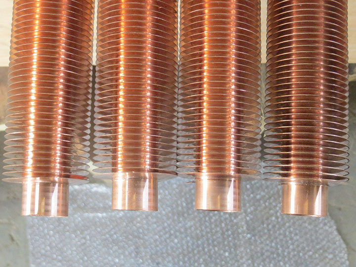 銅翅片管是指基管是優質紫銅管,通過專用繞片機,把優質紫銅帶緊密均勻地纏繞在基管外表面,然后整體搪錫。繞片式銅管銅片翅片管,工作溫度:-10℃-+160℃。