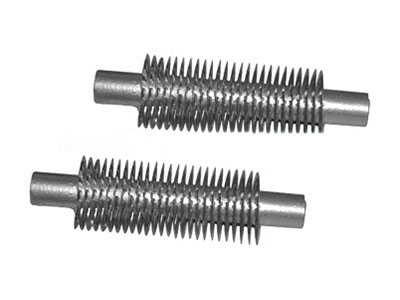 鋼制繞片螺旋翅片管是采用直繞式加工工藝,即在一根優(yōu)質無縫鋼管上,通過專用繞片機,把優(yōu)質鋼帶靠機械力緊密、均勻地纏繞在基管外表面,兩端進行點焊固定;然后將鋼制繞片翅片管整體進行熱鍍鋅處理。