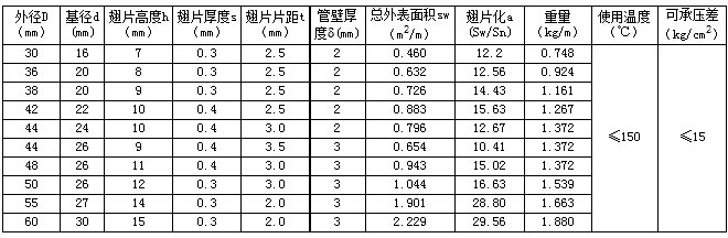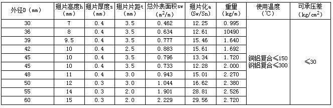 雙金屬復(fù)合翅片管參數(shù)表