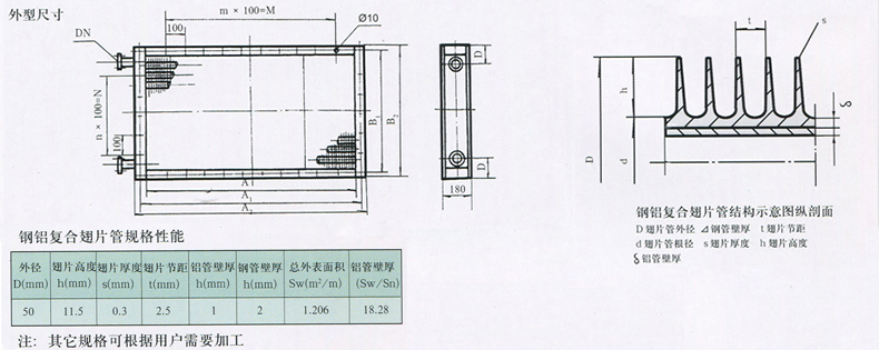 鋼鋁復合翅片管制造工藝先進,它是鋼、鋁管復合在專用機床上軋制面成,使鋼基管與鋁翅片結(jié)合緊密,它具有熱阻小、傳熱性能好、強度高、流動損失小,防腐蝕性能強、工作壽命長等優(yōu)點。